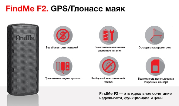 Поисковый GPS/ГЛОНАСС маяк FindMe F2 — это не просто усовершенствованная модель маяка FindMe F1. Это принципиально новое устройство, которое взяло все лучшее из линейки маяков FindMe, но при этом усилено рядом функций и расширенными возможностями мониторинга: для максимально точного поиска объекта он использует сигнал GSM-станций и одновременно 2 спутниковые системы (GPS и ГЛОНАСС). Данный маяк создавался специально для определения местонахождения автомобиля, мотоцикла или любого другого мобильного объекта на случай, если он будет похищен или утерян. Компактное устройство скрытно устанавливается на объект наблюдения и передает пользователю свои точные спутниковые координаты.