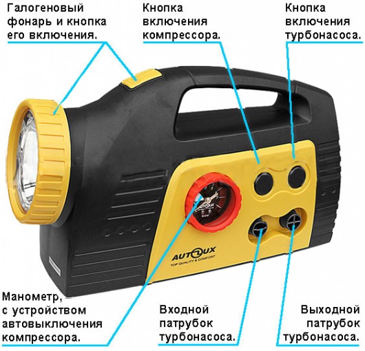 Предназначен для накачивания шин автомобилей, мотоциклов, велосипедов, а также резиновых лодок, надувных матрасов и спортивных мячей