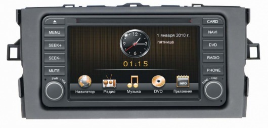Также в магнитоле присутствует модуль GPS, а значит есть возможность воспользоваться функцией навигации. Благодаря программному обеспечению «Навител», установленному на модуль, вам будет предложен оптимальный вариант маршрута, а затем на дисплей будет выведен путь, по которому следует двигаться. Это гарантирует, что до заданного адреса вы доберетесь благополучно. Чтобы появились доступ в Интернет и функция отображения кнопок, нужен модем Intro GPS 3G. Модем не входит в стандартную комплектацию и приобретается отдельно.