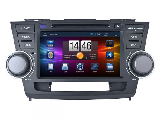 NaviPilot DROID 2 для для Toyota Highlander от 2011 до 2014 года выпуска устанавливается в штатное место приборной панели и отлично сочетается с интерьером вашего автомобиля. Все разъемы выполнены по технологии "pin-to-pin", устройство монтируется без нарушения штатной проводки, тем самым сохраняя гарантию на ваш авто. Уникальность штатного головного модуля заключается в том, что он представляет собой мультифункциональную систему с обширными возможностями диагностики. Эта система удачно сочетает в себе GPS-навигацию и компьютерное устройство с доступом в Интернет.