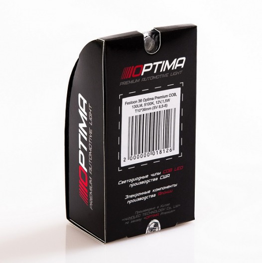Софитная лампа Оптима сделана из высококачественны материалов. Электроника лампы "родом" из Японии, a LED чипы производятся в США. Благодаря этим чипам, салонная лампа Optima Premium Festoon служит намного дольше, не изменяя цвета свечения.