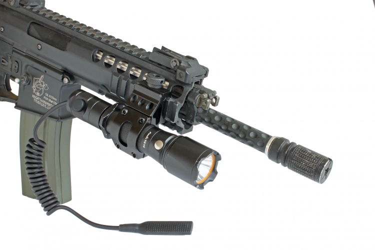 Фонарик включается и выключается кнопкой, расположенной в хвосте. Режимы переключаются кнопкой в передней части фонаря. Также в модели реализована возможность подключения выносной тактической кнопки, устанавливаемой вместо крышки батарейного отсека. Ей очень удобно быстро включать и выключать тактический фонарик в любой ситуации.