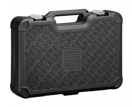 Весь набор инструментов BERGER BG097-121438 находится в оригинальном и стильном кейсе. Чемодан изготовлен из высокотехнологичного пластика с добавлением резины. Такая конструкция делает его очень ударопрочным и стойким к низким температурам.