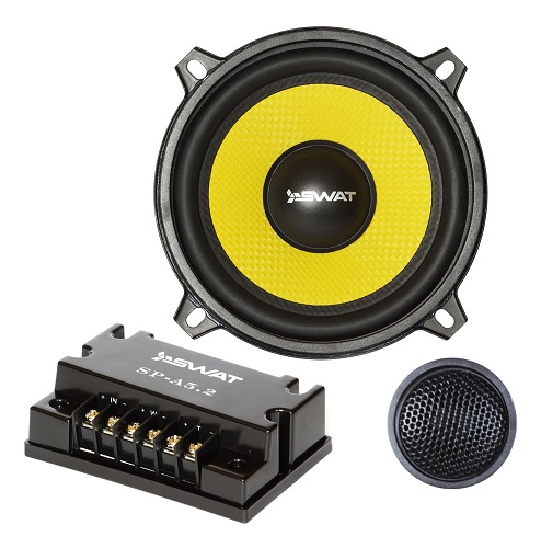 SWAT SP-A5.2 – двухкомпонентная акустическая система 5,25-дюймового размера, которая оснащена шелковы твиттером с неодимовым магнитом и диффузором из полипропилена. Такое сочетание обеспечивает стабильную работу даже при скачках напряжения и других неблагоприятных факторах. Модель отличается простотой инсталляции и может использоваться как самостоятельно, так и совместно с внешним сабвуфером или усилителем. Устройство демонстрирует хороший запас мощности – 50 и 220 Вт. Его чувствительность составляет – 88 дБ. SWAT SP-A5.2 работает в широком диапазоне частот 70 Гц-20 КГц, что дает возможность оценить качественное звучание музыки в различных стилях. Кроме того, вы оцените приемлемую стоимость модели.