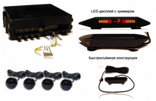 Цветное фронтальное табло индикатора (со встроенным звуковым зуммером) показывает расстояние до препятствия. Звуковой сигнал предупреждает о приближении к опасности, а динамик встроен в табло индикатора. Таким образом, при появлении опасного объекта вы увидите на дисплее индикацию расстояния до него и услышите звуковой сигнал. Звуковые сигналы различаются между собой в зависимости от удаленности препятствия.