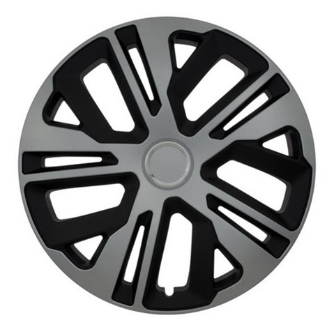 Диаметр автомобильных колпаков на колеса — 16 дюймов. Цвет: серебристо-черный.
