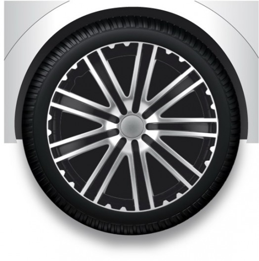 Диаметр автомобильных колпаков на колеса — 16 дюймов. Цвет: серебристо-черный.