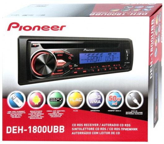 Автомобильная магнитола 1din Pioneer DEH-1800UBB – очень функциональное утройство. У автомагнитолы есть широкий набор мультимедийных технологий, которые позволяют выжать из устройства по максимуму. Ресивер способен выдавать звук на 4 колонки по 50 ватт. Есть возможность сохранения до 18 радиостанций на цифровом радио-тюнере. Кроме того, реализована возможность прослушивания аудиозаписей через карту памяти или диски.