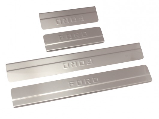 Накладки на металлические пороги дверей Форд Фокус 2 с логотипом авто не только обеспечивают защиту верхней и боковой поверхности внутреннего порога, но и отлично вписываются в интерьер автомобиля, подчеркивая его стиль и индивидуальность. C монтажом проблем не возникнет: установка накладок на внутренний порог для Ford Focus 2 производится на штатные места с помощью скотча 3M.