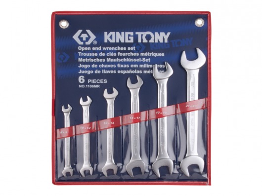 KING TONY 1106MR — это набор рожковых гаечных ключей, состоящий из 6 инструментов  – от 8 до 19 мм. Рожковые ключи KING TONY 1106MR хранятся в удобном чехле, в котором все ключи расположены строго по размеру.
