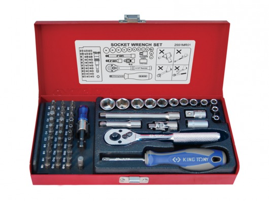 KING TONY 2551MR01 — это набор инструментов, который включает в себя все самое необходимое, что должно быть у каждого автомобилиста (всего 51 предметов). Каждый ручной инструмент из комплекта позволяет вам устранить небольшие поломки в своем автомобиле.