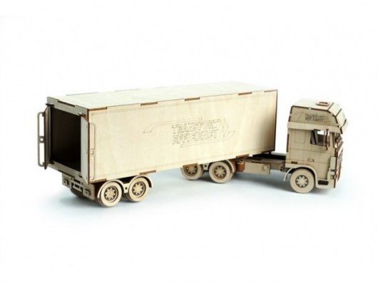 Вы очень интересно проведете время, собирая 3D конструктор, а после — получите полноценную качественную игрушку. Грузовик из дерева получается солидный и большой. К тому же сделан он очень реалистично и отлично ездит по любой поверхности. Кроме того, прицеп обладает такими креплениями, с помощью которых он поворачивается на поворотах, а дверцы кабины и прицепа легко открываются.