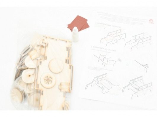 Детали конструктора Lemmo легко и в то же время интересно собираются в красивую и реалистичную игрушку-внедорожник. При этом в набор входит клей ПВХ и наждачная бумага, с помощью которых ваш ребенок может собрать развивающий конструктор наиболее аккуратно. После сборки деревянного внедорожника можно раскрасить его гуашевыми и акриловыми красками. В результате у вас дома появляется полноценная и красочная деревянная машинка, у которой к тому же есть подвижные элементы (вращаются колеса). А это не может не обрадовать ценителей качественных и экологически чистых игрушек.