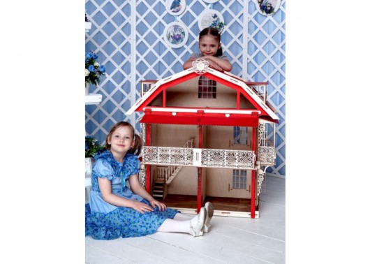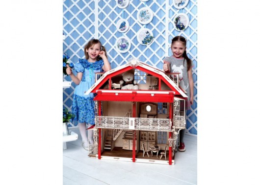 Деревянная игрушка Lemmo Большой дом для кукол — это набор конструктора с большим количеством деталей (260 штук), поэтому для самостоятельной сборки он рекомендован детям от семи лет. Детям помладше (от пяти лет) понадобится помощь взрослых. Но процесс сборки очень увлекателен, поэтому он может превратиться в прекрасное времяпрепровождение семейного досуга. А в результате получается большой красивый кукольный дом. Его внешний вид очень изящный: красные фасады дополнены интересными вензелями. Стены домика для кукол можно покрасить любой краской или даже оклеить обоями.