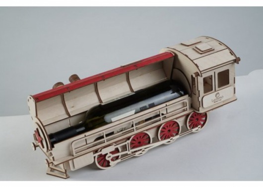 Подарочная упаковка «Паровоз» сделана из качественной древесины. При этом котел паровоза открывается, и в нем прекрасно помещается бутылка вина, а в будке машиниста — коробка конфет. Благодаря такой праздничной упаковке, у вас есть возможность подарить самый оригинальный подарок среди множества других. Вы можете довольно интересно преподнести презент начальнику или коллеге, положив сюрприз в такую упаковку для подарков.