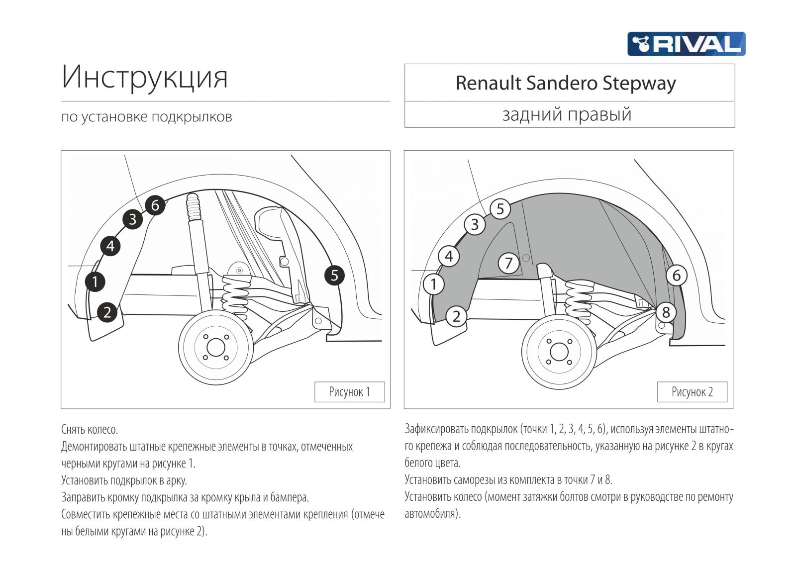 Правый задний подкрылок — это отформованный ударопрочный кожух, который является важной защитной деталью авто. Данный подкрылок крепится сзади с правой стороны. Задний локер разработан специально для автомобилей Renault Sandero Stepway от 2014 г.в. Благодаря этому он идеально повторяет форму ниши колеса, просто устанавливается, а все технологические отверстия правого подкрылка совпадают со штатными местами крепления.