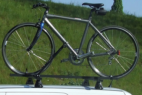 Багажник на крышу для велосипеда фиксирует колеса к профилю парой текстильных ремешков. Диаметр рамы велосипеда должен находиться в пределах 20-50 мм. Велосипедное крепление устанавливается на любые стальные поперечины размером до 70*50 мм (ширина/высота).