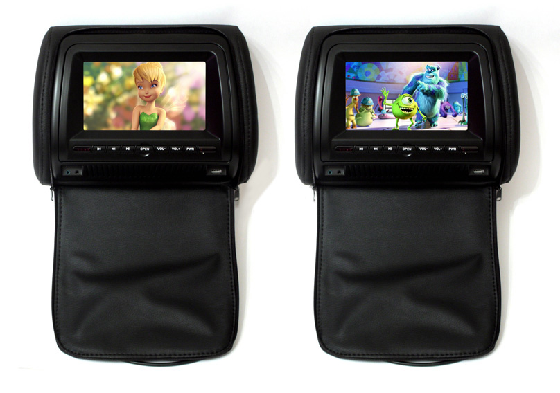 Комплект ERGO ER700HD даёт возможность одновременно одному человеку смотреть фильмы, а другому играть в игры, ведь ERGO ER700HD состоит из двух подголовников, каждый из которых оснащен DVD-проигрывателем. Ещё одним отличием этой модели является наличие специальных чехлов c застёжкой на молнии. Это делает подголовники в закрытом положении полностью незаметными для окружающих. Что касается проводов, то они могут быть спрятаны под обшивкой сиденья и не будут нарушать дизайн салона.