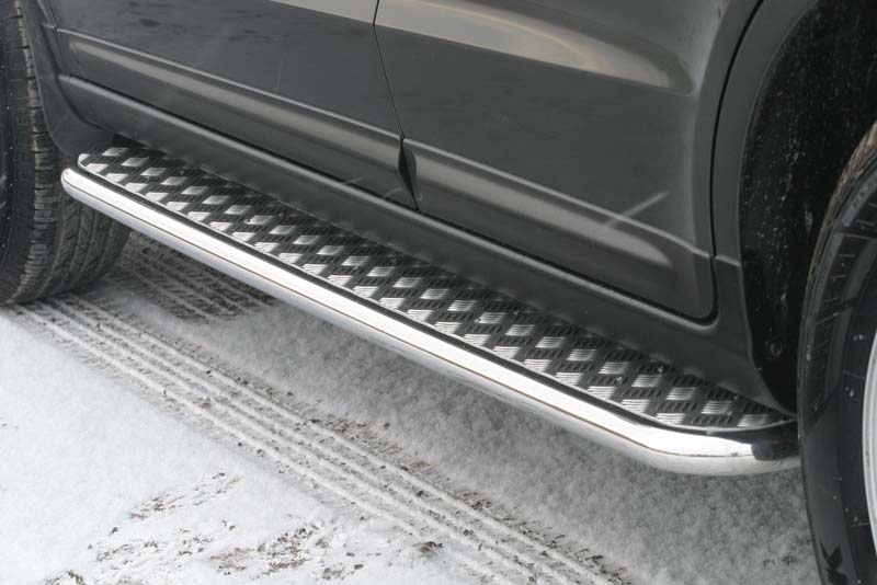 Боковые пороги на Hyundai Santa Fe из нержавеющей стали диаметром 60 мм не боятся коррозии, сколов и царапин и выдерживают большие нагрузки. Боковые подножки-пороги трубой сделаны специально для автомобилей Hyundai Santa Fe 2006-2010 г.в., легко устанавливаются и стильно смотрятся. В комплекте вы получите 2 подножки.