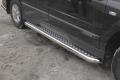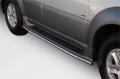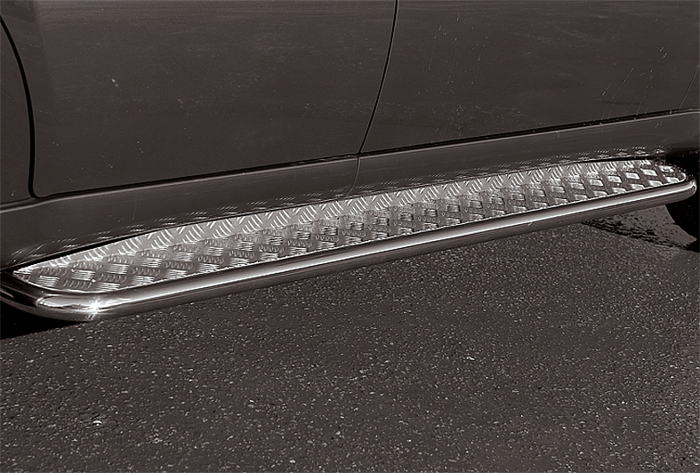 Боковые пороги на SsangYong Actyon Sport из нержавеющей стали диаметром 76 мм не боятся коррозии, сколов и царапин и выдерживают большие нагрузки. Боковые подножки-пороги с листом сделаны специально для автомобилей SsangYong Actyon Sport от 2012 г.в., легко устанавливаются и стильно смотрятся.