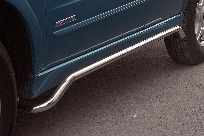 Боковые пороги на SsangYong Kyron из нержавеющей стали диаметром 76 мм не боятся коррозии, сколов и царапин и выдерживают большие нагрузки. Боковые подножки-пороги трубой сделаны специально для автомобилей SsangYong Kyron 2005-2006 г.в., легко устанавливаются и стильно смотрятся. В комплекте вы получите 2 подножки.