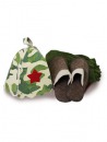 В комплекте: килт для бани, шапка и тапочки