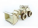 Вращаются колеса, поднимается и фиксируется ковш